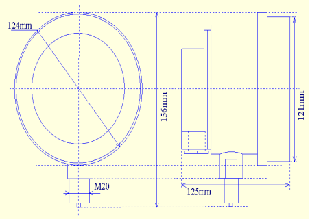 儀表使用干式陶瓷壓力傳感器,對(duì)安裝的角度無要求。儀表壓力導(dǎo)入口使用M20的外羅紋和壓力容器相連接,也可定制其他類型的連接接口。儀表外型尺寸見其它章節(jié)。