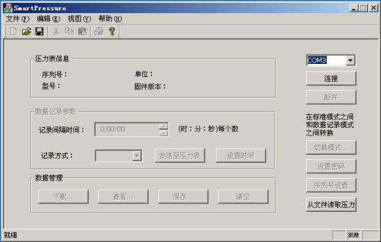 一旦測量的數(shù)據(jù)被記錄后,把壓力表連接到任何運行SMART PREESURE運行程序(免費獲得:www.shbxwg.cn)計算機上。然后下載數(shù)據(jù)并且自動保存到Microsoft Excel電子數(shù)據(jù)表中。SMART PREESURE可以使用Excel樣板文件自動地對您的數(shù)據(jù)格式化