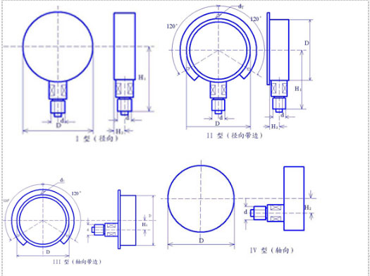 此儀表是由測(cè)量系統(tǒng)(包括接頭、彈簧管、齒輪傳動(dòng)機(jī)構(gòu))、電接點(diǎn)機(jī)構(gòu)(包括上、下限給定針上下限觸頭和動(dòng)角頭)、指示部分(包括指針、度盤)、表殼部分和接線盒組成,其作用原理基于彈簧管變形、末端產(chǎn)生位移,借助連桿帶動(dòng)傳動(dòng)機(jī)構(gòu)、使帶有觸頭的指針旋轉(zhuǎn),在度盤上指示出壓力。上、下限給定針按需要分別給定出最大和最小指示值,當(dāng)被測(cè)介質(zhì)壓力達(dá)到最大或最小給定值時(shí),動(dòng)觸頭分別和上下限角頭接觸,而發(fā)出電信號(hào)。